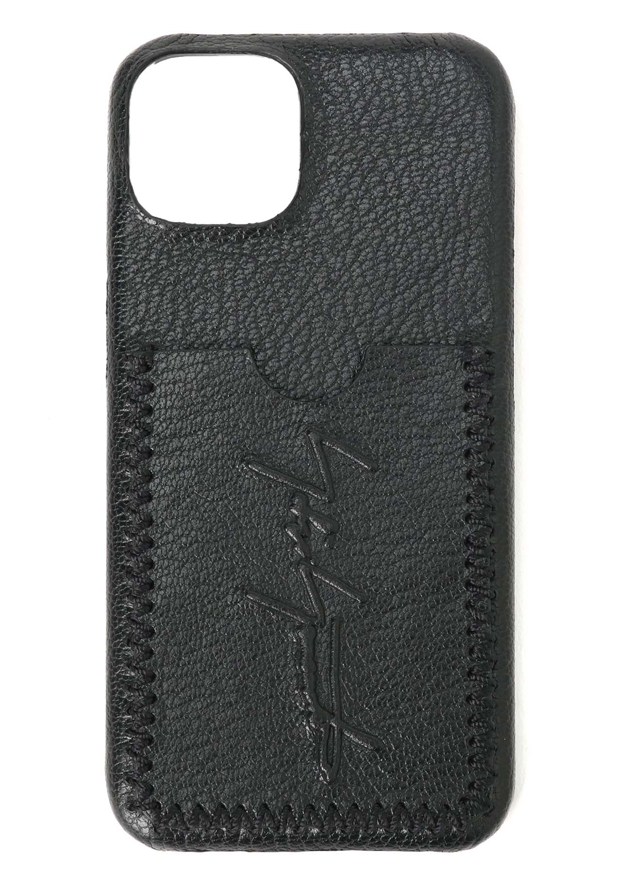 This premium iPhone case features a luxurious shrink leather covering on a polycarbonate base. It showcases the Yohji Yamamoto signature on the back and includes a card slot. Compatible only with iPhone 14, iPhone 14 PRO, iPhone 15, and iPhone 15 PRO.