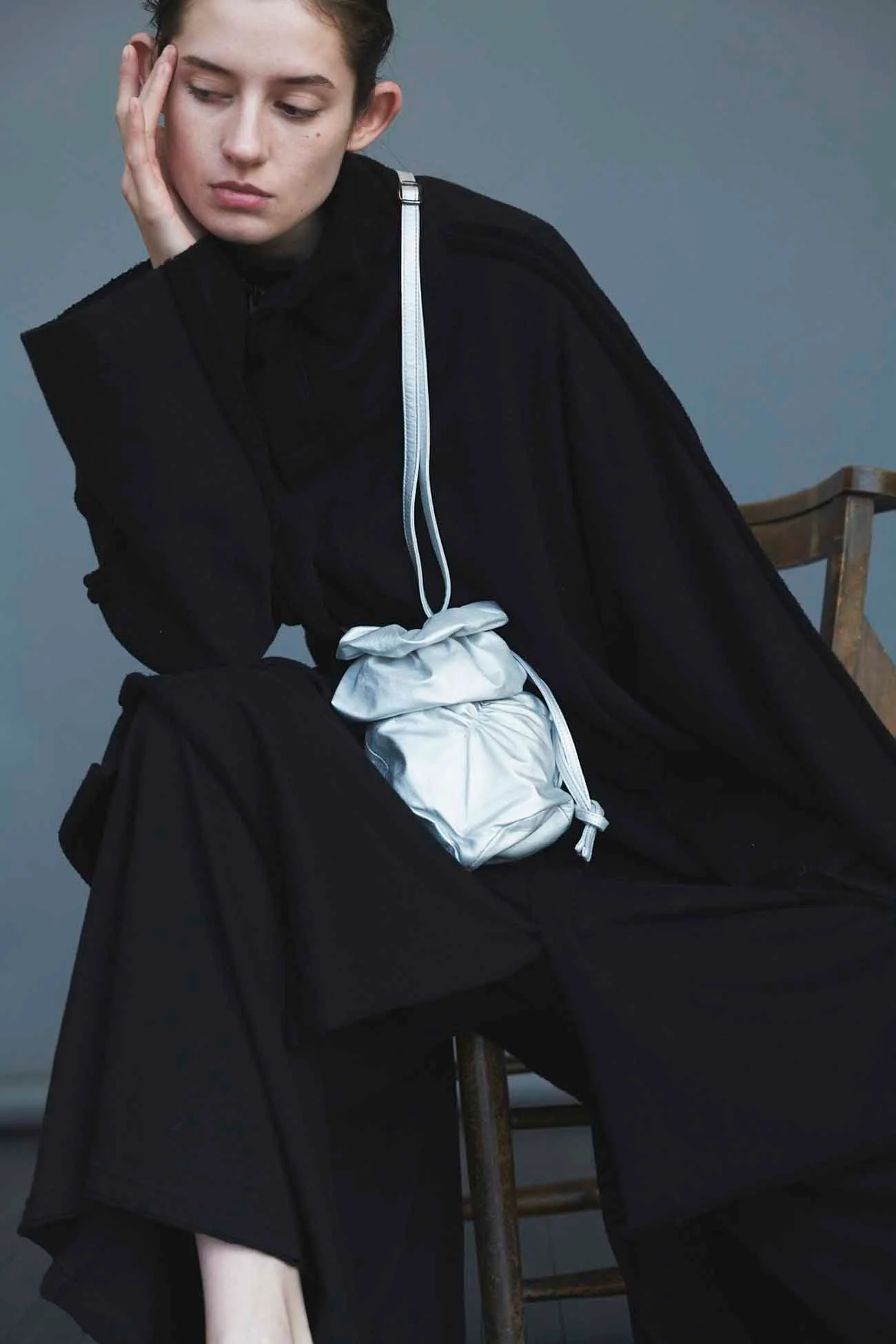 This drawstring bag, tailored like a garment, is a signature creation from Yohji Yamamoto. It's remarkably lightweight despite being lavishly made with leather.