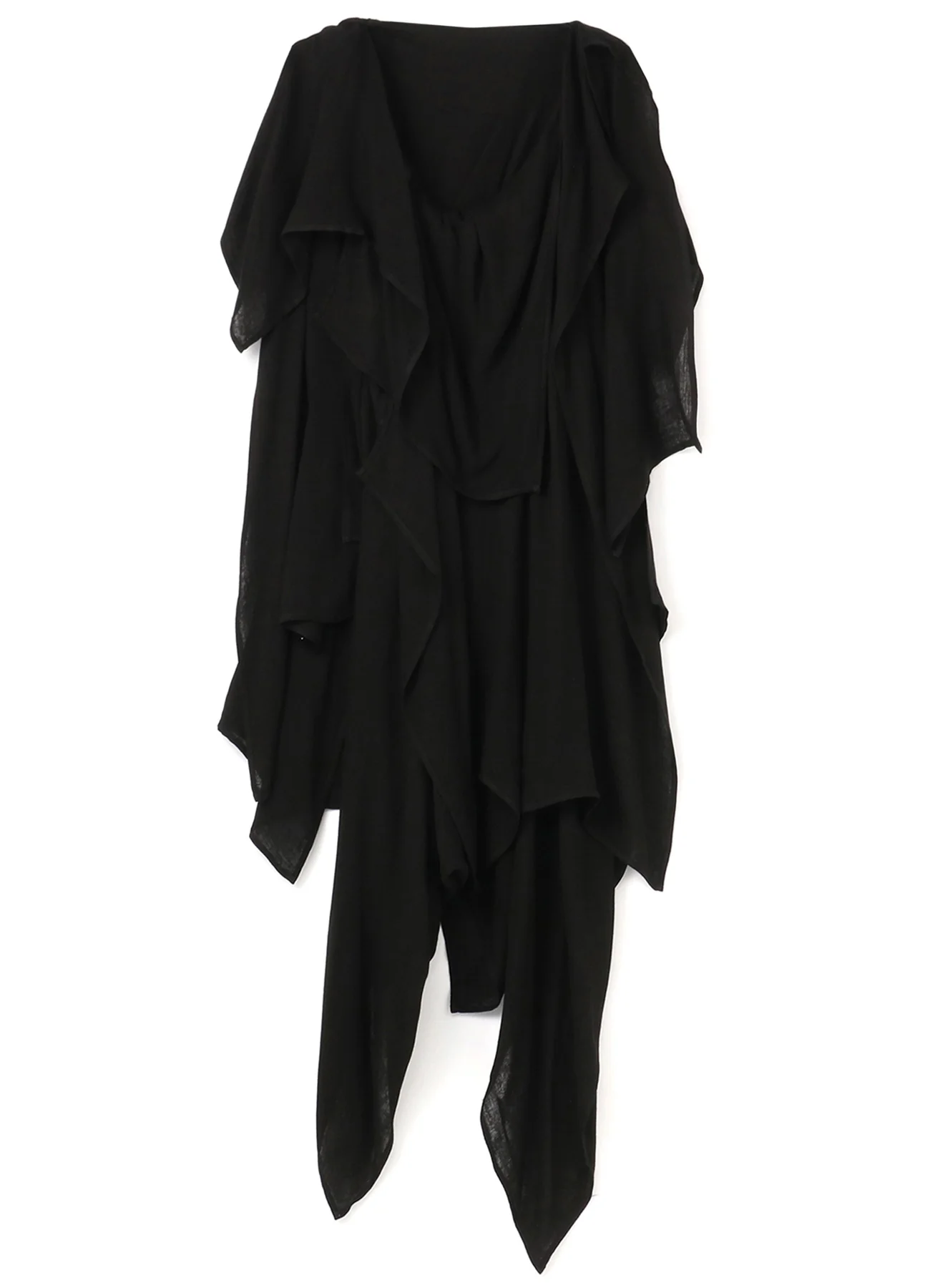 This sleeveless blouse features a beautifully uneven drapery from overlapping fabric on the body. Made from doubled gauze spun-rayon, it has enhanced strength and a smooth, airy texture. It pairs well with a corresponding front long skirt for a casual look, making it a versatile and stylish piece.