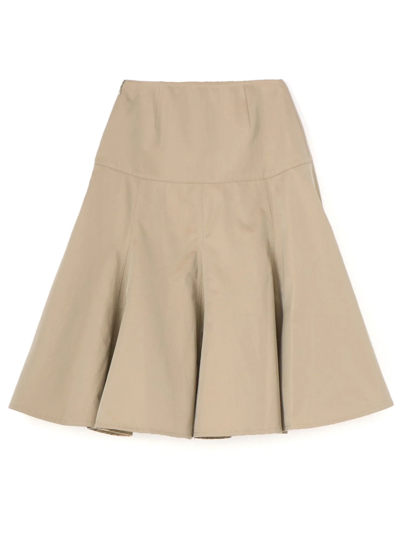 Made from smooth and firm cotton gabardine, this flared skirt offers a sleek silhouette around the waist. With added gussets below the hip, it provides a clean fit that complements tops well. It comes in a just-right length, making it perfect for spring and summer outfits.