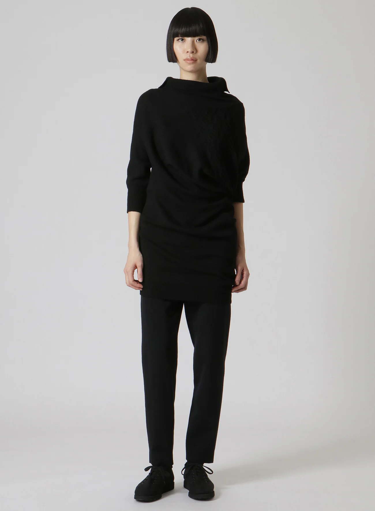 PLAIN ST+PATTERN+RIB DRAPED TURTLE NECK B
