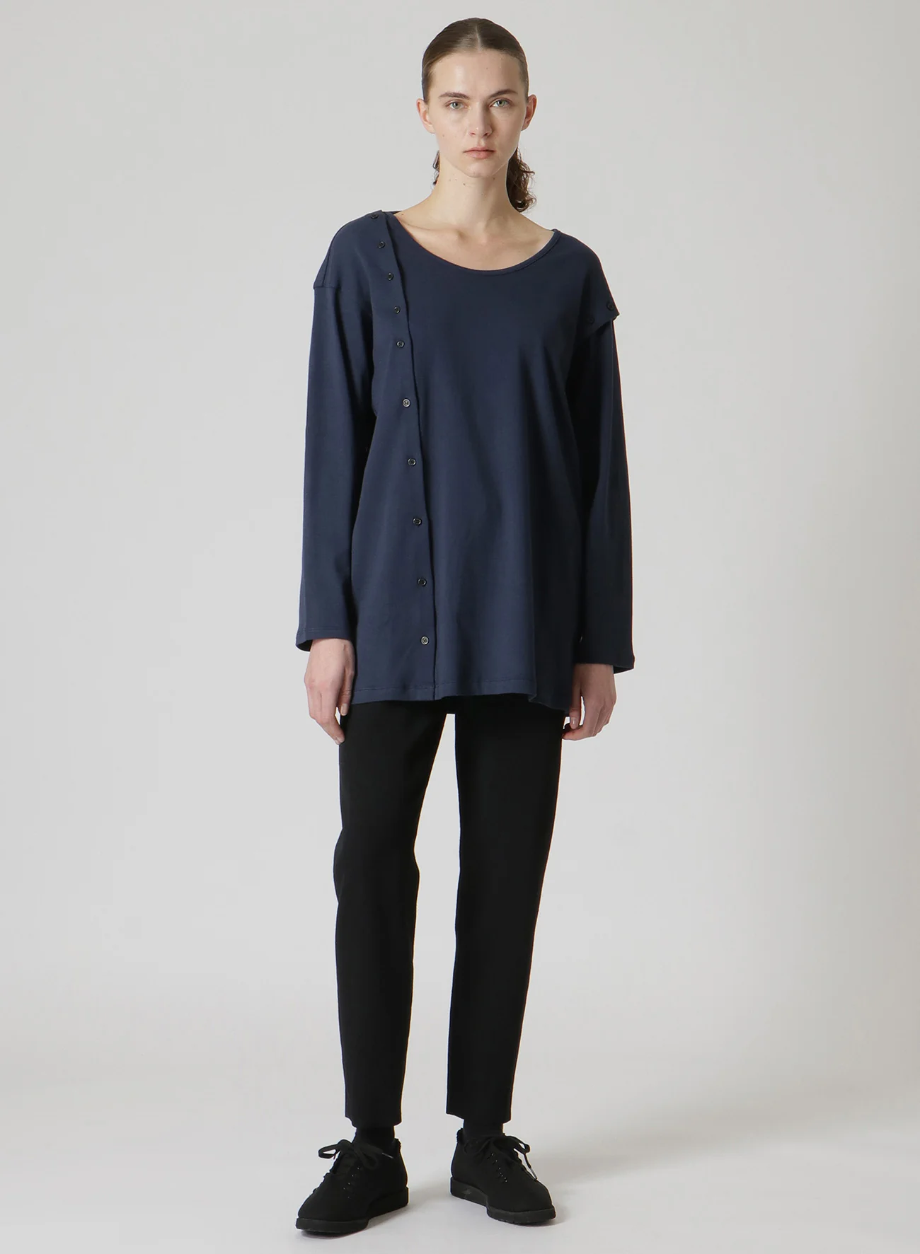 30/- COMBED COTTON LONG SLEEVE T-SHIRT WITH BUTTON-UP SLITS